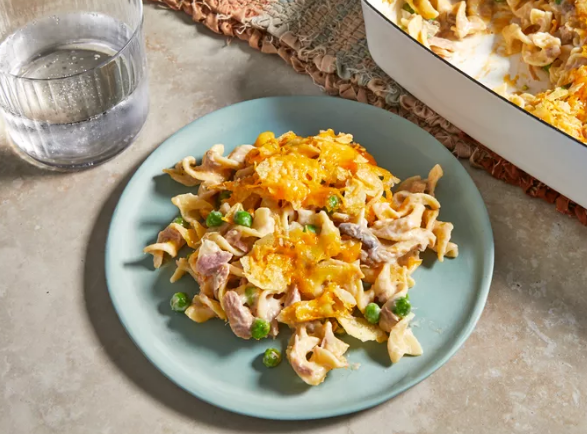A mix of noodles, canned tuna, and condensed soup topped with cheese (and often breadcrumbs or peas), tuna noodle casserole was America’s original “dump-and-bake” dinner.