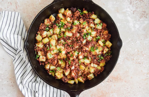 Born out of necessity and perfected during wartime, canned corned beef hash—made with onions, potatoes, and tinned beef—became a staple breakfast, lunch, or dinner.
