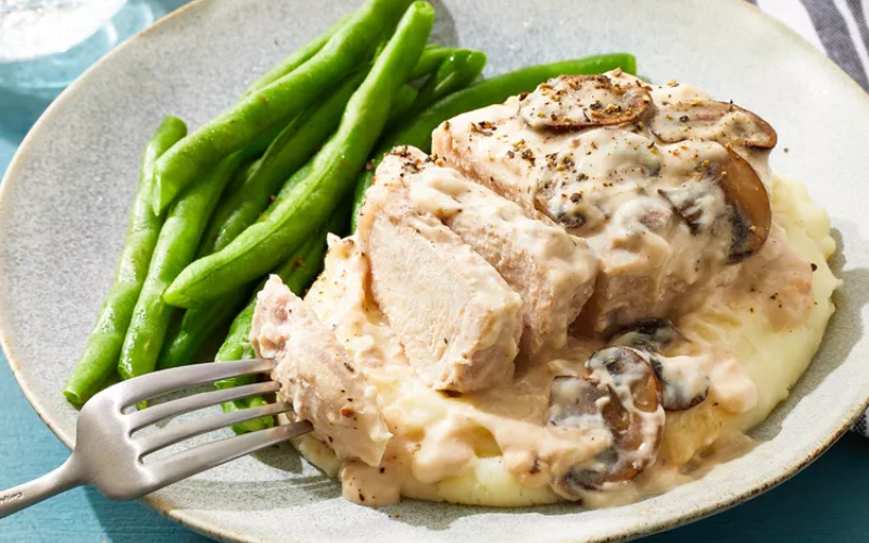 This recipe uses just five ingredients to deliver tender pork chops drenched in creamy mushroom goodness. With onions at the base and condensed soup pulled over everything, it’s a quick, comforting bake perfect for weeknight dinners.