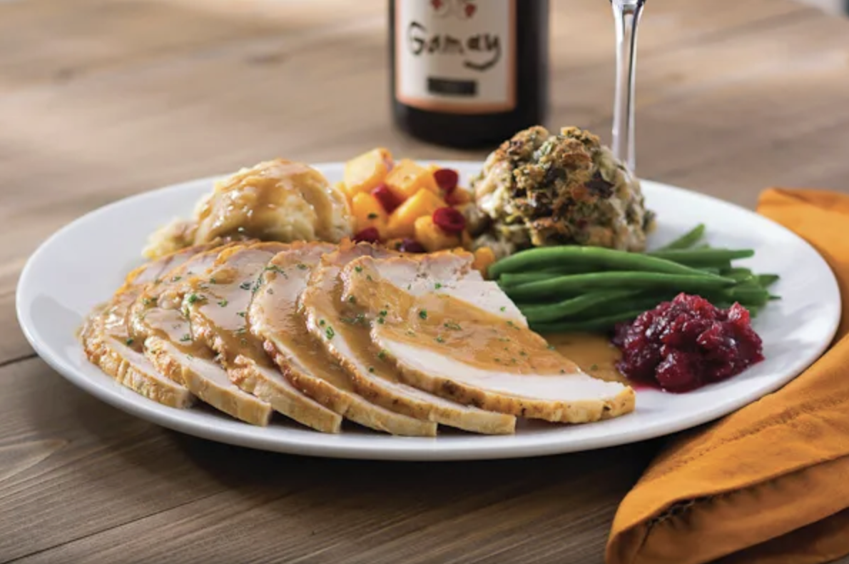 Ruth’s Chris is synonymous with special occasions, and Thanksgiving is no exception. Their Thanksgiving Feast features sliced oven-roasted turkey, sausage & herb stuffing, homemade turkey gravy, and cranberry relish.