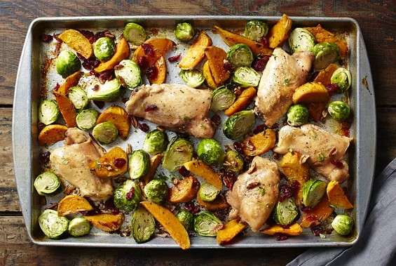 - Glaze and finish: Remove the tray, flip the chicken, and brush everything with the maple glaze. Roast another 15 minutes, or until chicken is cooked through and the vegetables are tender.