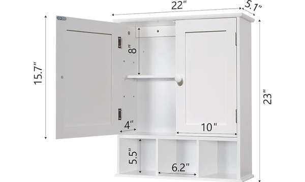 TaoHFE Wall Cabinet with 2 Door Adjustable Shelves, Storage White Wall Mounted Medicine Cabinets for Bathroom Laundry Room Kitchen $45.59 @ Amazon