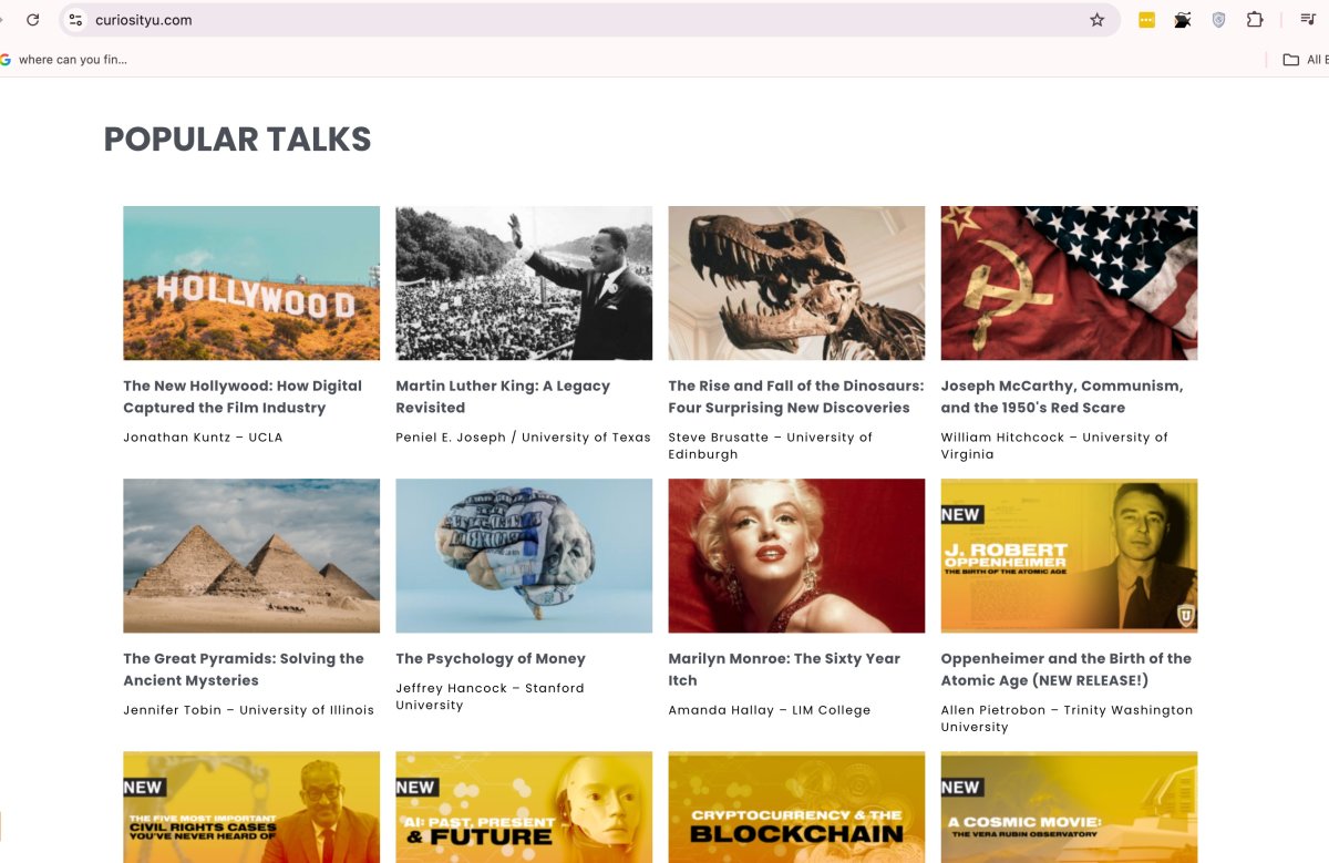 Browse curiosityu.com by topic, choose your membership level, and start exploring.