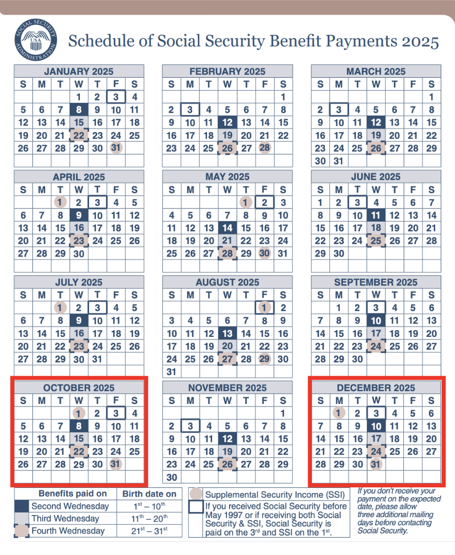 Here’s when SSI benefits will be paid through the end of the year: October 1—regular payment for October; October 31—early payment for November; December 1—regular payment for December; and December 31—early payment for January 2026.