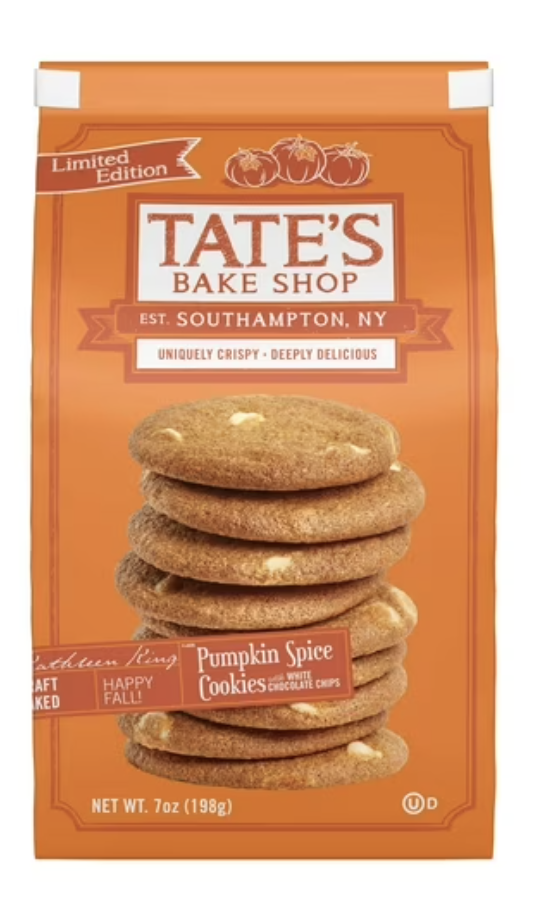 Tate’s Bake Shop is well known for thin, crispy cookies, and this fall edition adds ginger, cinnamon, nutmeg, and white chocolate chips.